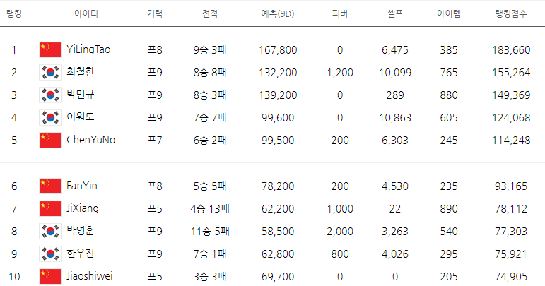 여기에서 5개의 대국실의 내용을 살펴보겠습니다.