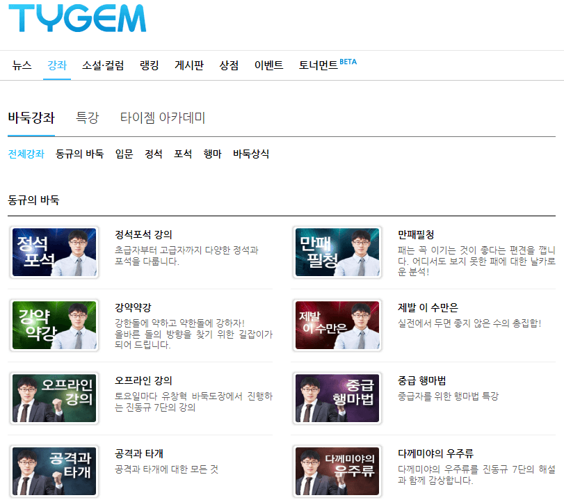 타이젬 바둑강좌는 초보부터 수준급까지 다양한 계층의 바둑 애호가들을 우해 마련된 강좌입니다.